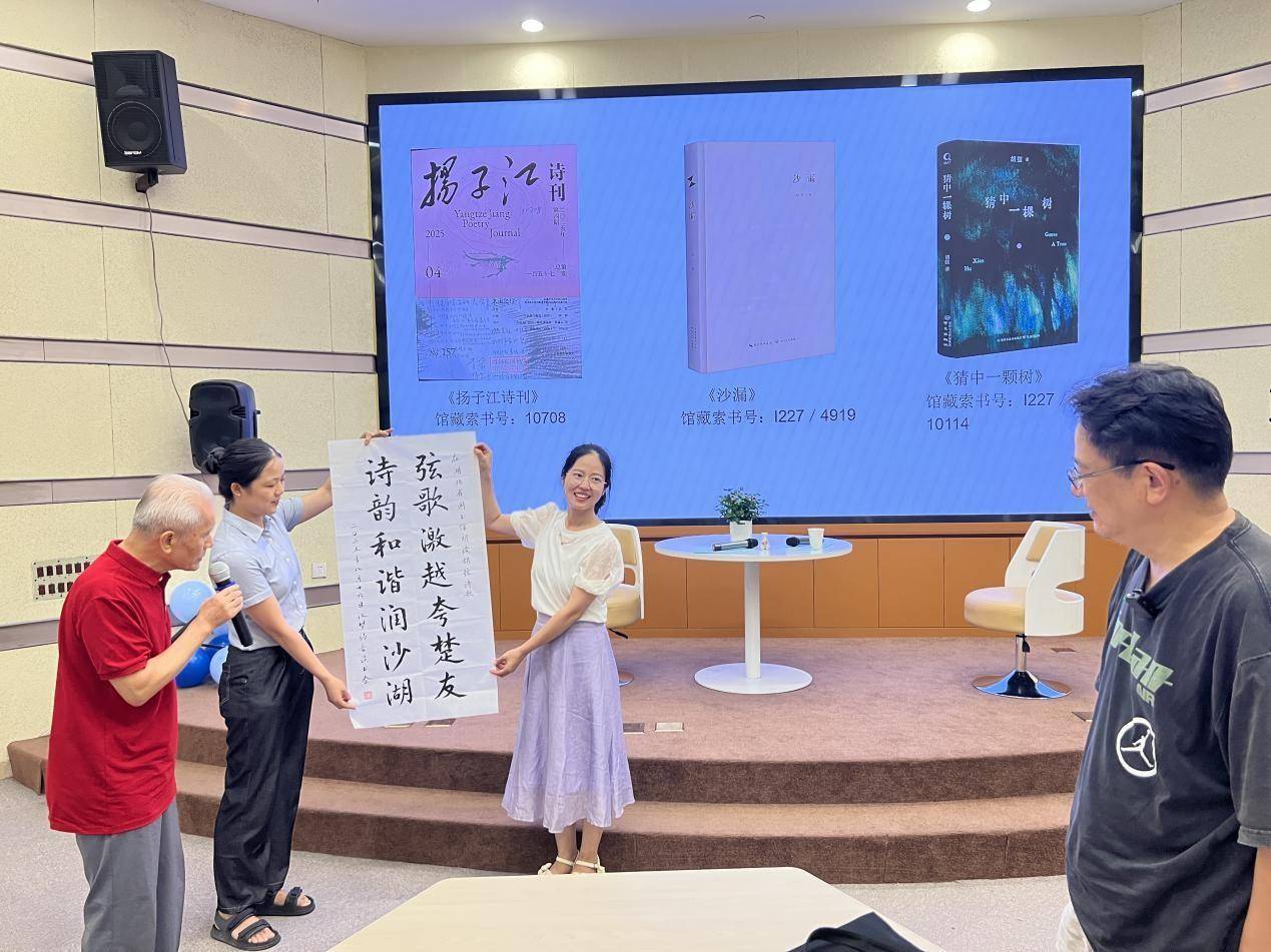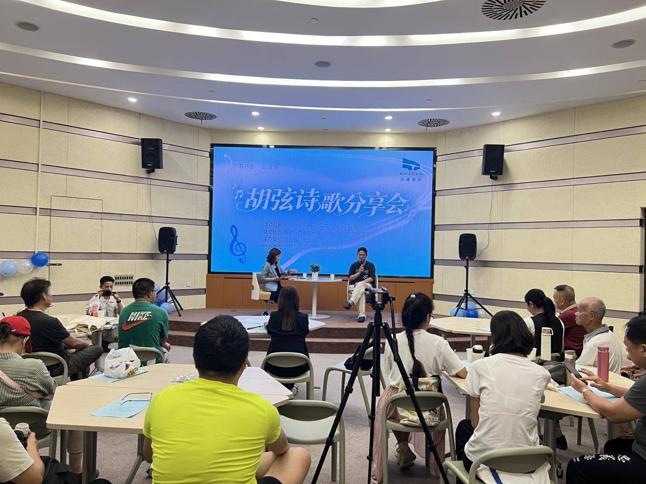 由湖北省图书馆主办,汉梦清音读书会、珞珈国学社协办的“沙湖书会·一起读诗”活动中,胡弦与50余位诗歌爱好者共读。他分享了自己的作品《猜中一棵树》《运河博物馆的陶罐》等的创作心路和美学思考,共同探讨AI时代诗人创作的方法达道宝,对部分原创诗歌作品作出专业点评,细致解答了诗友们在诗歌创作中的困难和疑问。