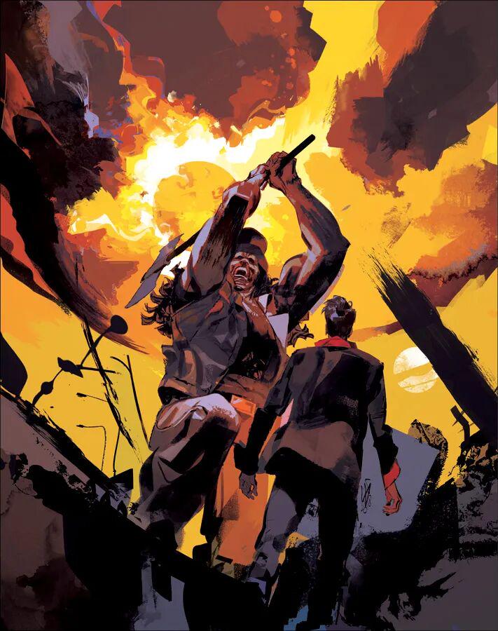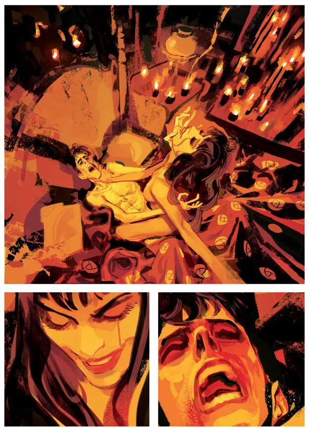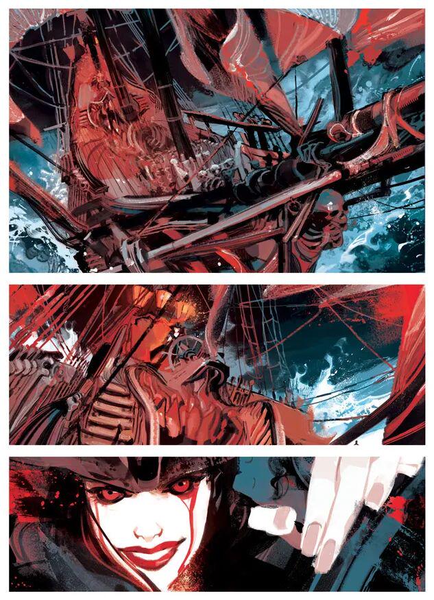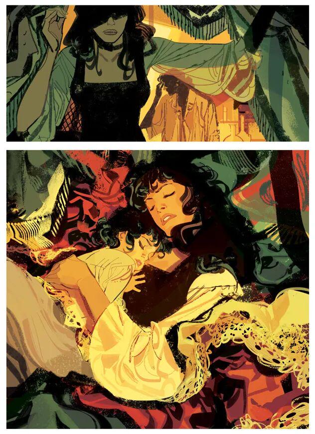 但是Gigi Cavenago的线条却写满了不羁和灵动,这致使出自他手的人物造型总是有些夸张,然而神情刻画却没崩坏过哪怕一回。