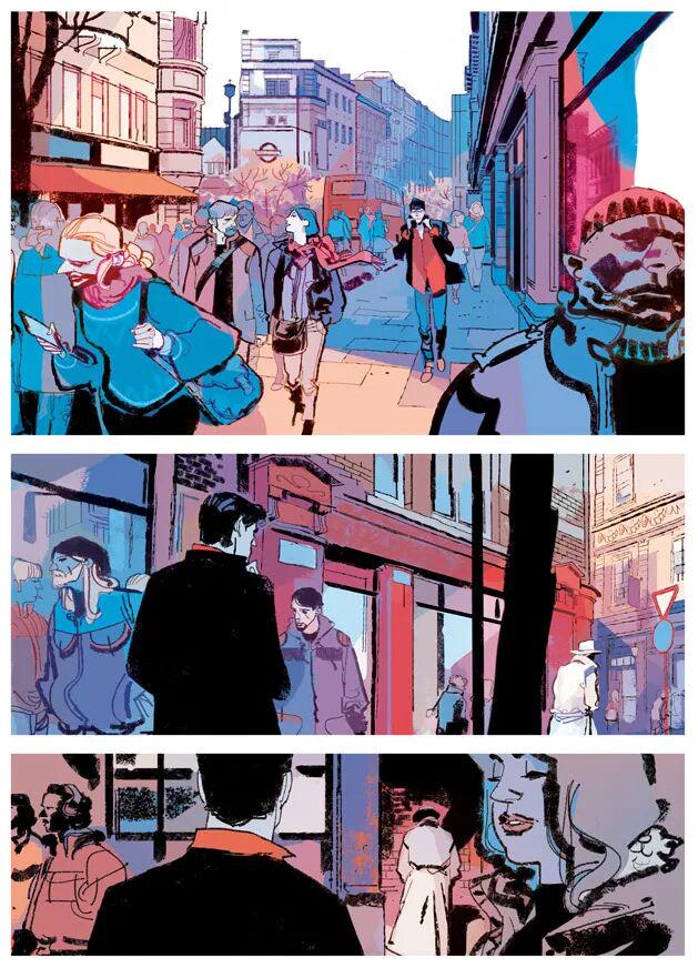 由于Gigi Cavenago在学生时代不仅学过漫画,还学过平面设计,因而或许多少有受到建筑制图的影响,将色彩视为空间分割工具。